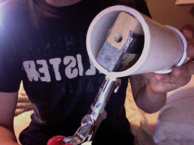 hmmm well i think i'll just deal with the high rate of fire lol, but i made a super ghetto model with duct tape end caps and a wooden block with cardboard shield over the the hole, used a one inch hole and i just stuck a 3/8in brass nipple fitting into the bottom and drilled a hole just big enough for airsoft bbs which were the first things i saw laying around to shoot :D i got one good burst out of at 20psi with an ultra ghetto 2- 2liter bottle back pack air tank shot at least 100 bbs in like 4 seconds lol, couldnt get it to work after that, i think it blew to duct tape away from the vortex block and then the air just escaped out the hole in the duct tape, not through the vortex block, any way i'll try to post a pic above, but how do you post pics in like a comment?