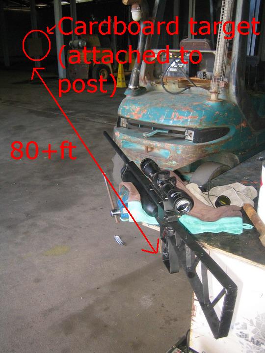 So far we've only tested the accuracy to 80 feet, and we can get approx 2" groupings. Part of that is due to human error and the fact I've only got a 4x32 scope. I might vice mount it and get a real accuracy reading (and buy a better/bigger scope).
