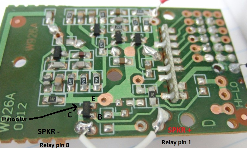 Can you post close up pictures of the speaker transistor from top and bottom of circuit board?