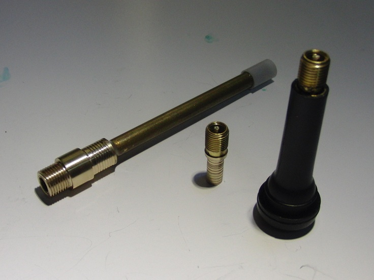 Also illustrated is the schrader valve prepared for attachment, along with a "virgin" example.