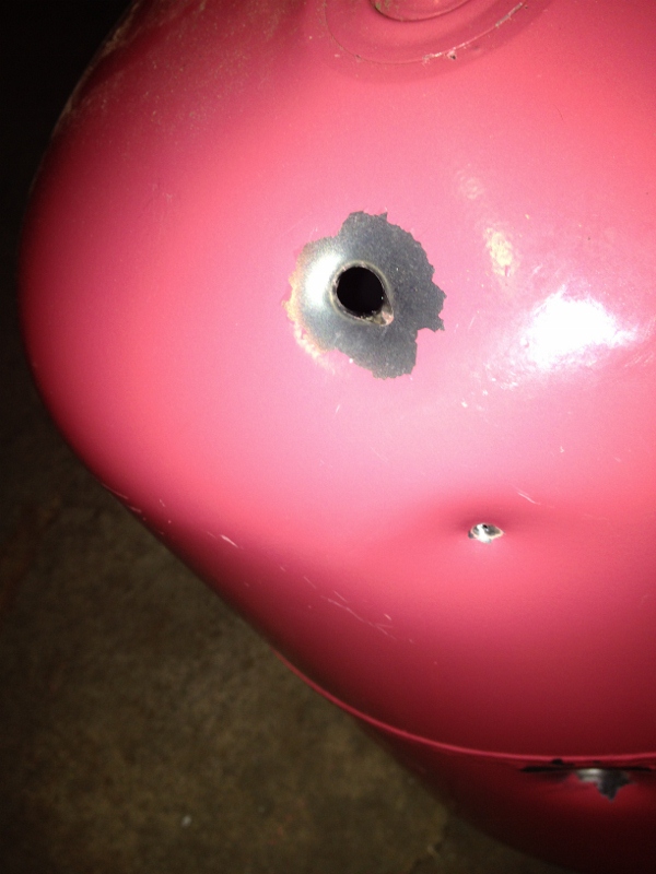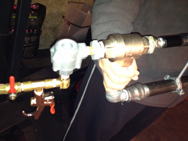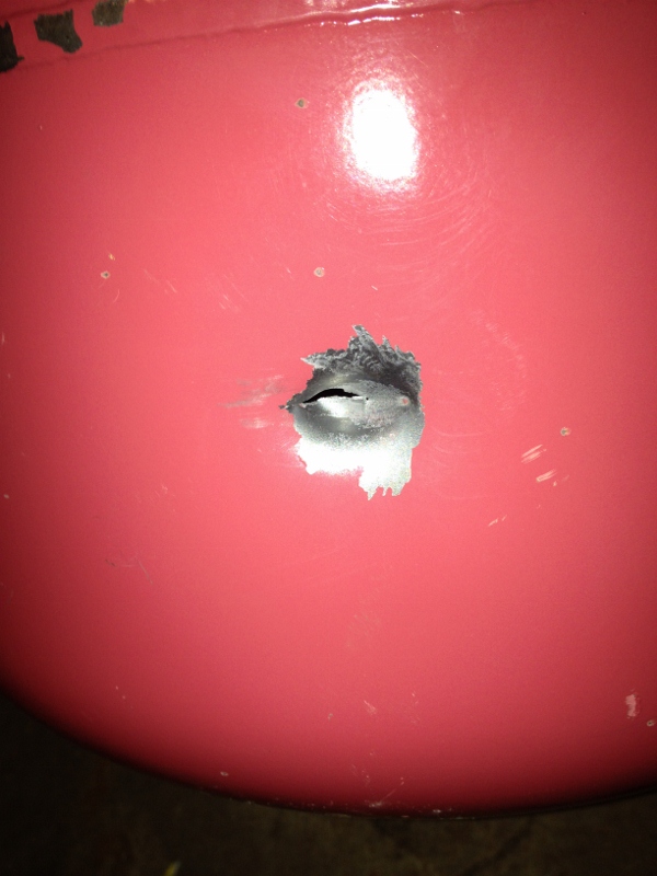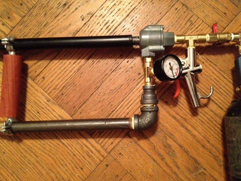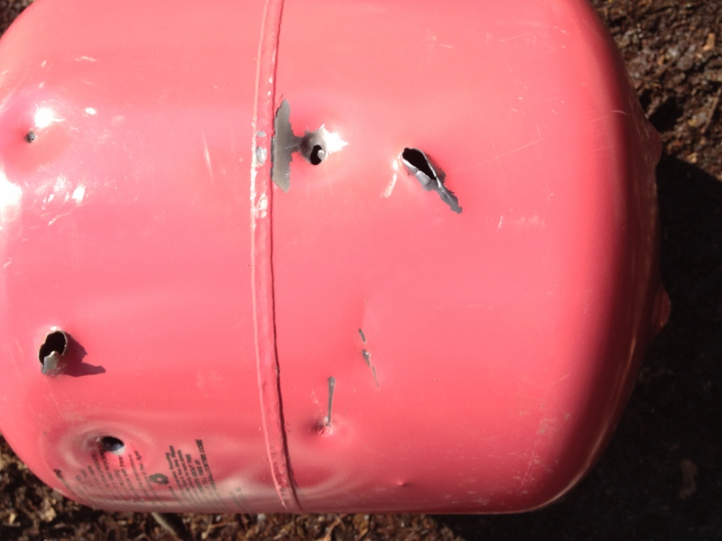 3. Taking the Metered Propane tube off my combustion gun and making chamber attached to a spring loaded ball valve. Shooting at well over 1,500 PSI (yes, reprimand me!).