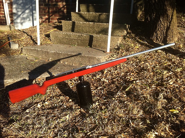 On the finished rifle there is no slot to slide the lever into,instead there is a small hole for a sprung screw for the piston to catch on when pulled back the screw is attached to a lever so when the lever is pushed the screw comes out of the hole and releases the piston.