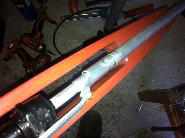 This is the inside of the pilot mechanism,it's the first one I used but it was sloppy and weak so kept the same concept but used heavier material,reasonably simple drag the copper piston back and slide the lever over in the slot you can see in the half inch copper tube (as the mechanism fits inside that)