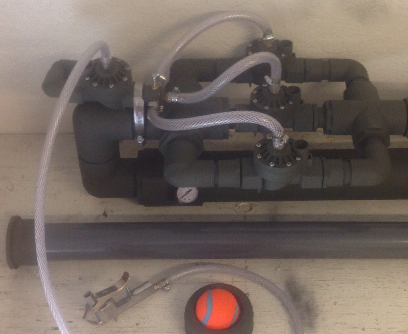 Valves: Three 1" Orbit Sprinkler valves ( Pneumatically triggered by 4th sprinkler valve)