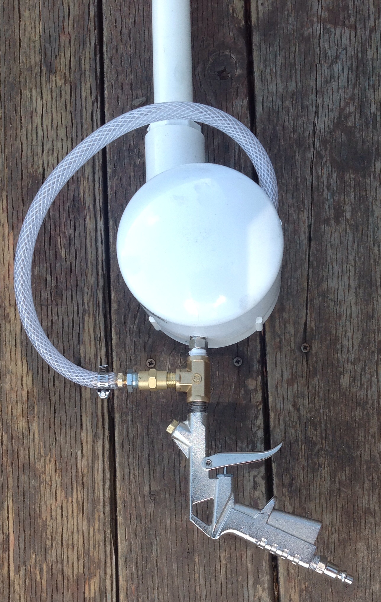 This is just a prototype and is powered straight off my compressor right now. I have a 3" x 24" sch 40 chamber for it, but haven't glued it together yet because I wanted to see how much air this thing needed. I have 6 small HPA tanks I'd like to use at some point. They are the ones that are about a foot tall.