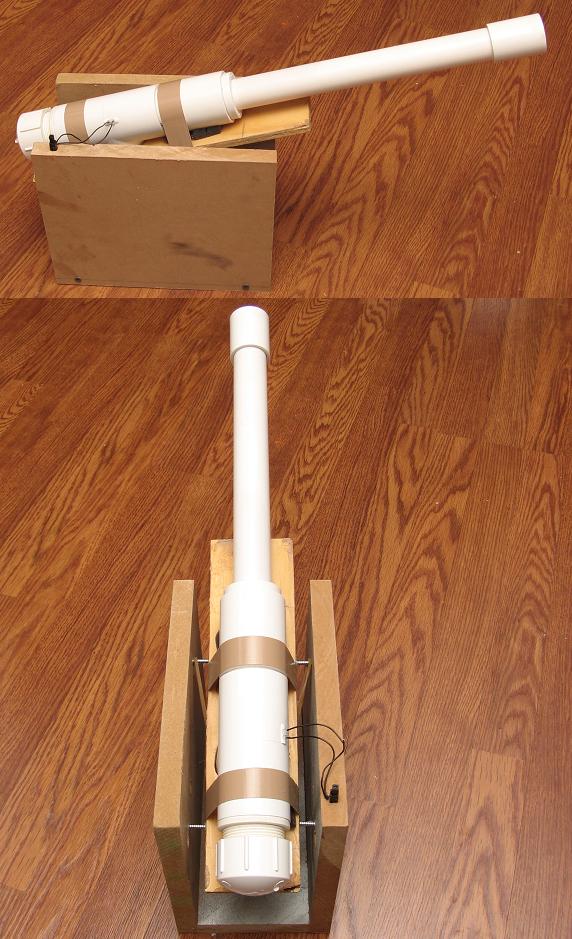 Or you would see some serious chunks of PVC breaking away from the breech. Another guy on a different forum built one that looks just like a 6 pound cannon. He used a 6" tee down to a 3" barel! he shoots the same 3" tennis balls from his. The thing about his though is he wrapped the whole cannon with foam to give it that large look like a 6 pounder would look.