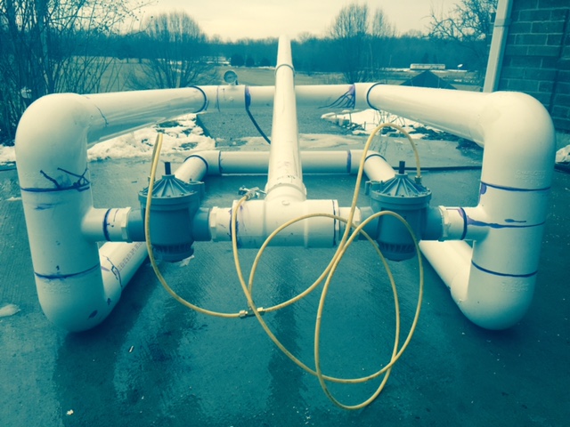 The sprinkler valves are two 2" unknown brand (bought off ebay predrilled and pre tapped 1/8" for this purpose.)