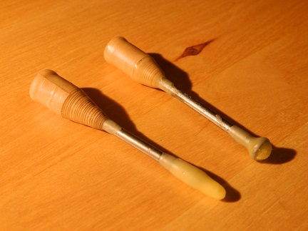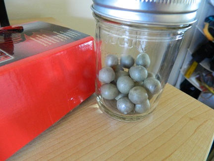 I little description of my ammo... For the cement bullets I used "Rocktite", this stuff with a creepy picture of a man. It's a mixture of gypsum and Portland cement. I cast them using a wooden mold I made. The wax I used for dipping is beeswax. As for the darts, I used that paper packing tape that's like masking tape, but stronger. I think that shooting these off in the woods won't have as much an impact on my environment as lead would.