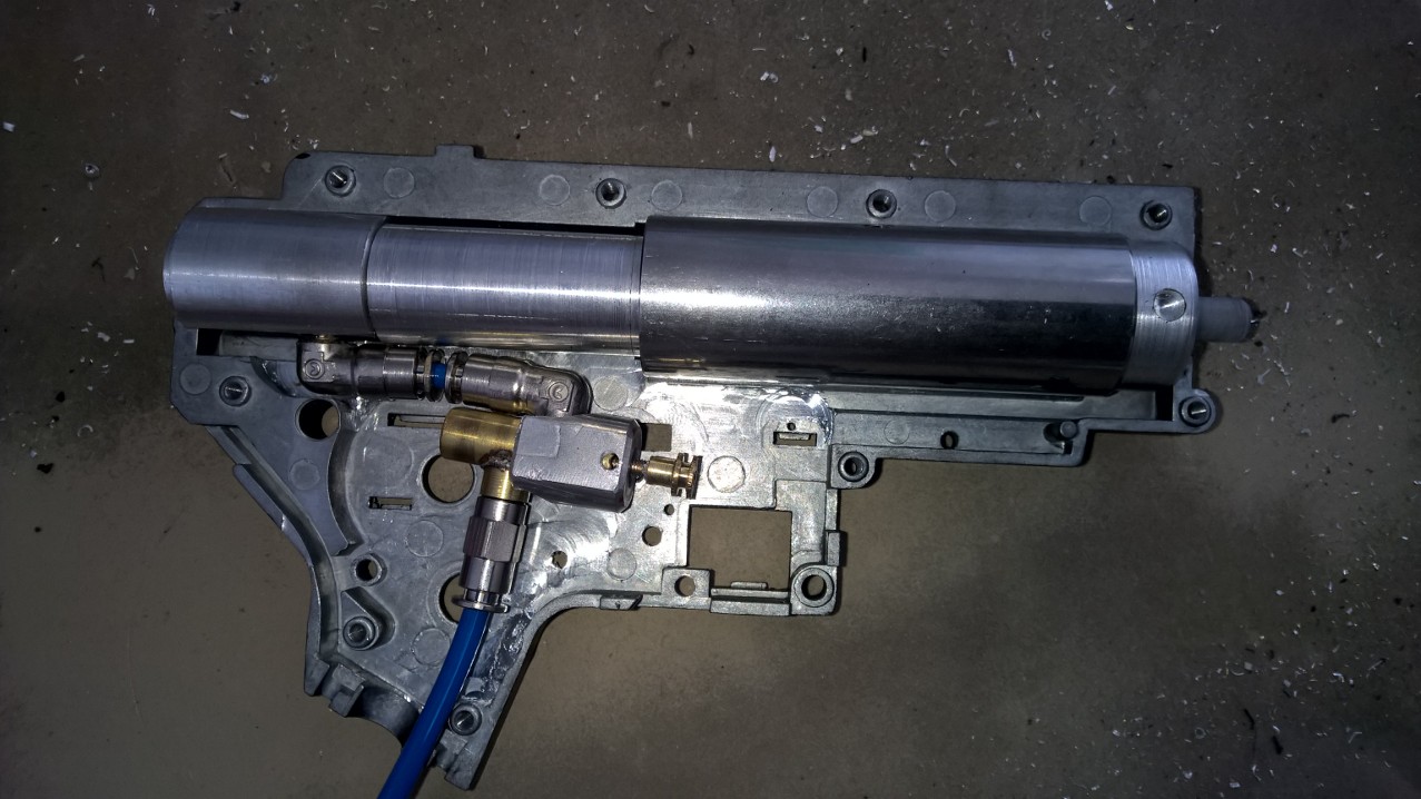 Gonna check the FPS later and get a proper hop-up system, this thing needs a hard hop-up to get the bb fly straight.