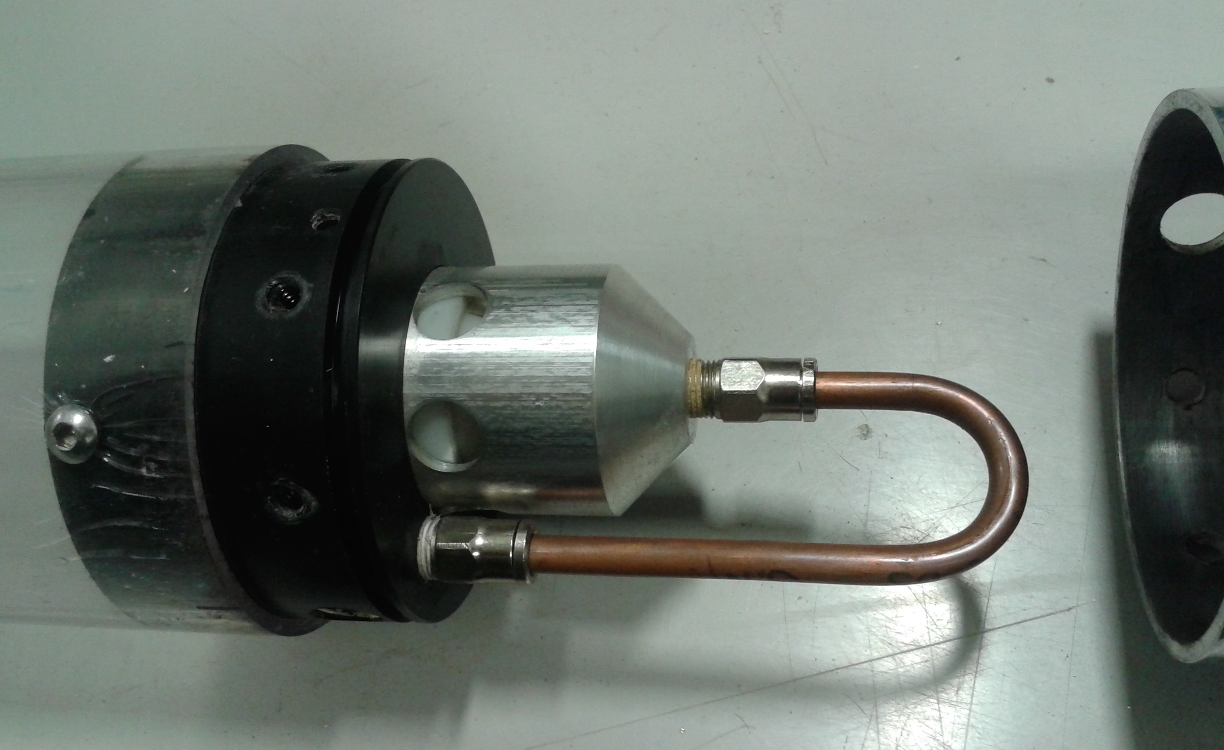 Green arrow shows where the air is filled from, this is then closed off and another valve is opened at the red arrow to empty the pilot volume and fire the launcher.