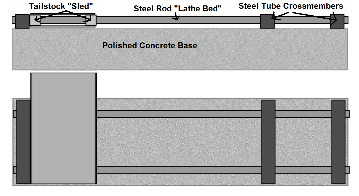 I'm planning to improve the stiffness of the overall design by bolting the entire assembly tightly to an extremely smooth concrete block. I think the concrete will help prevent a lot of bending and twisting. Even if it doesn't help (but it should) it'll add some mass to the lathe and keep it from sliding around, so I won't have to bolt the thing to a table. Win!