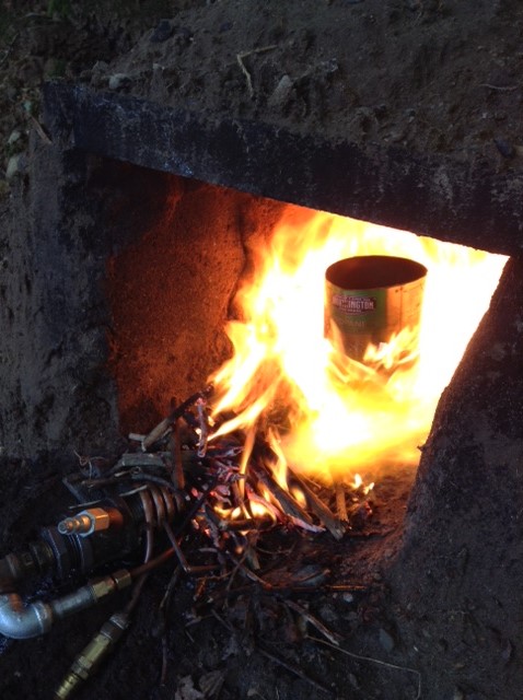 Some pictures of my super makeshift foundry and the burner in action (with heavier oils) to come