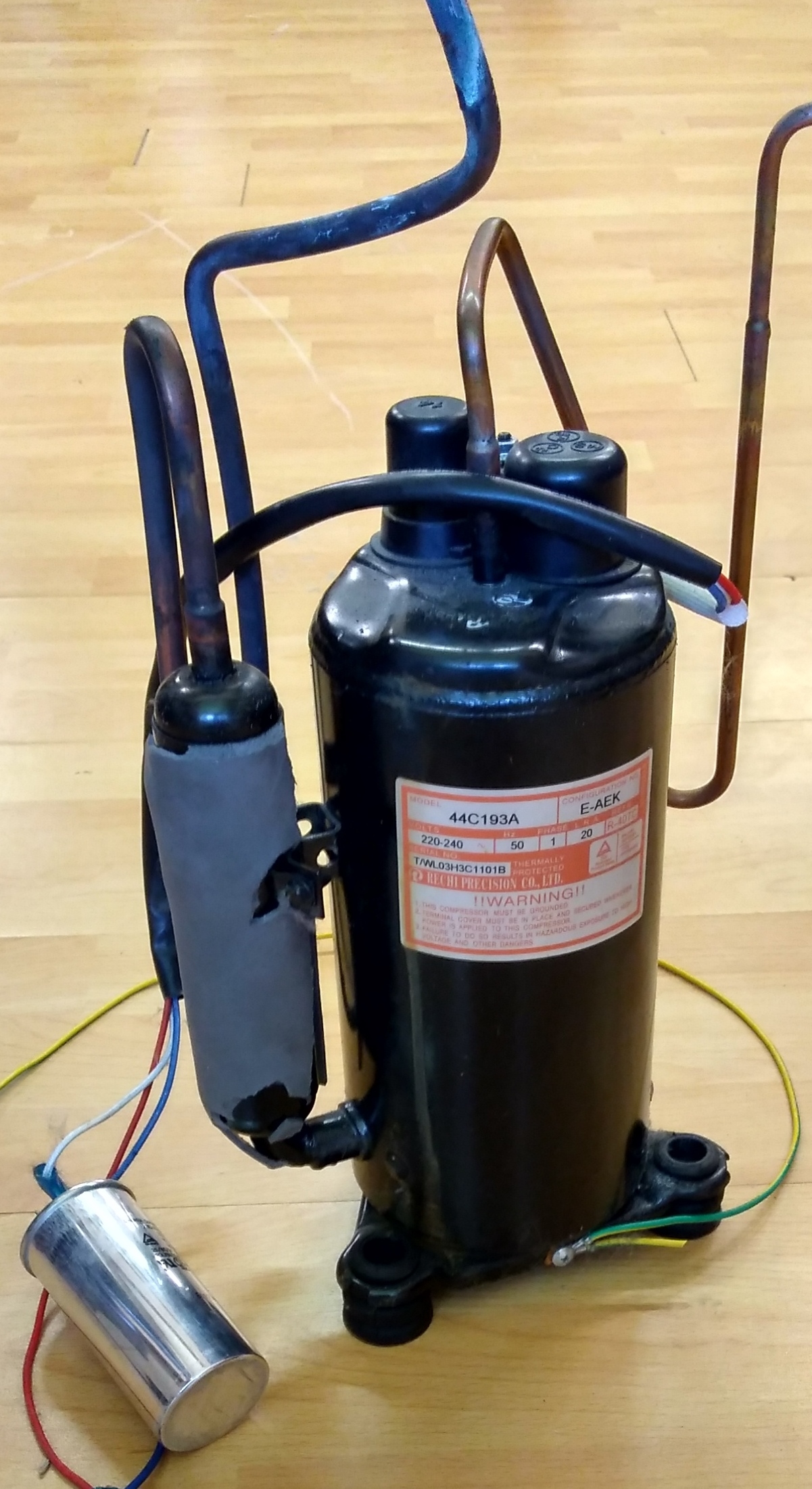 My parents recently switched from mobile air conditioning units to a central system, of the 3 mobile units i took apart the oldest one which barely generated any cool air anymore, as it was going to be thrown out anyway. It's a small compressor but it weighed in at over 11kg's! It was basically half the weight of the unit!