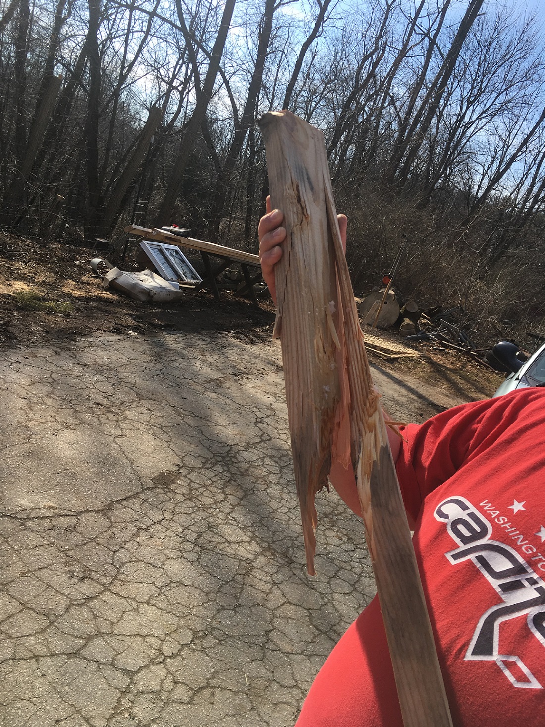 Believe it or not this was just spuds. I thought the potato would explode instead of splitting the 2 x 4 but it hammered right through. The plywood wire spool acted like a taught piece of paper and they punched right through as well.