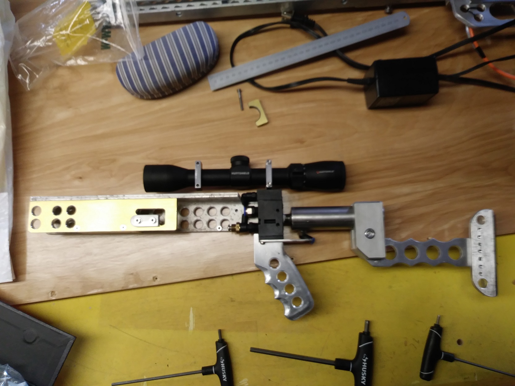 A test assembly to get measurements for the scope mounts and try the front grip mount.