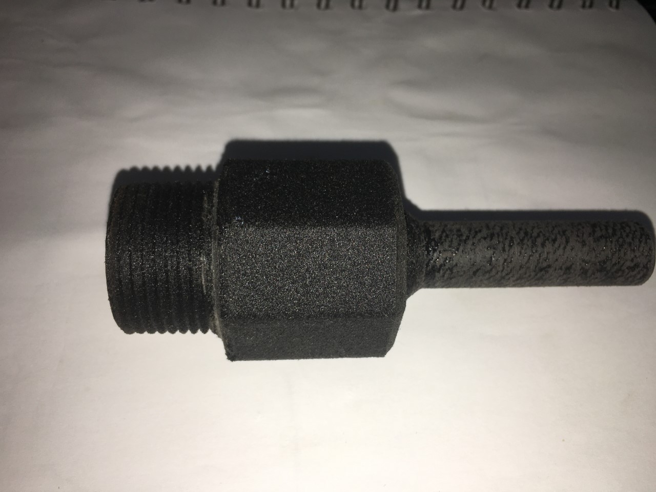 the part shown for example is 30% glass filled PA6 Nylon and the threads are accurate 1" NPT the smaller diameter was sanded smooth to aid in less friction glass fiber is rough textured like sand paper even at fine layer heights