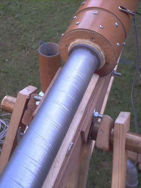 The barrel is 5 meters of 50mm OD pipe. I did some calculations, and found out that with the reletively low pressure of a combustion gun, a barrel of this length was needed.