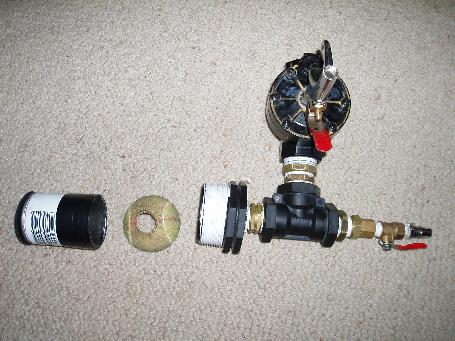 The filling system is filled with a 1/4 ball valve and male disconect and my samuel MKII valve si the pilot i also have a extension pipe for the vavle but i preffer the blow gun mounted flush on the sprinkler valve.The piston is verylight and thus makes the opening time faster it weighs in at a whopping 50 grams!When this gun is fired its extremely loud and if fired in confined spaces causes slight hearing loss and ringing.The piston can be removed for servicing or replacement which is easy as it is made from a spray can.I plan to make a barrel suport for the chamebr and barrel when i get the chance.