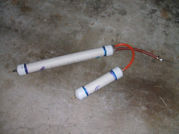 The air tanks: about 4 feet of 2" PVC, they can blast BBs for about 10 seconds nonstop.