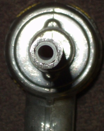 To answer A-98's question no it isn't too big, the brass tube is used for intimidation. Here is a picture of the barrel... i took a 1/4 inch tube and stuck it into the "root feeder", but first i had to shave off some plastic because it just barely couldn't fit.