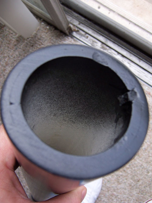 I made my cuts on a table saw which I had to cut and re-cut again until I was happy with the fit. I utilized hose clamps (2) to hold the cut pipe tightly together, then I started beating, and hammering, and pushing, and jumping, trying to defeat the seemingly impossible task. I noticed my hose clamps s-l-o-w-l-y micro metering their way down, I knew then that this was at least working.
