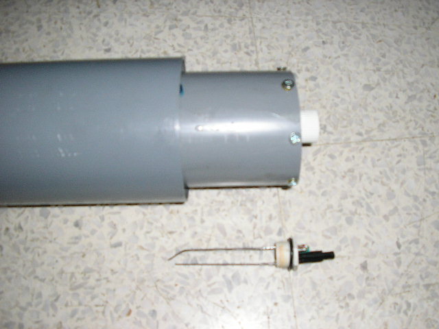 Piezo ignitor taken from a cigarette lighter, epoxied to threaded fitting for ease of maintenance and venting