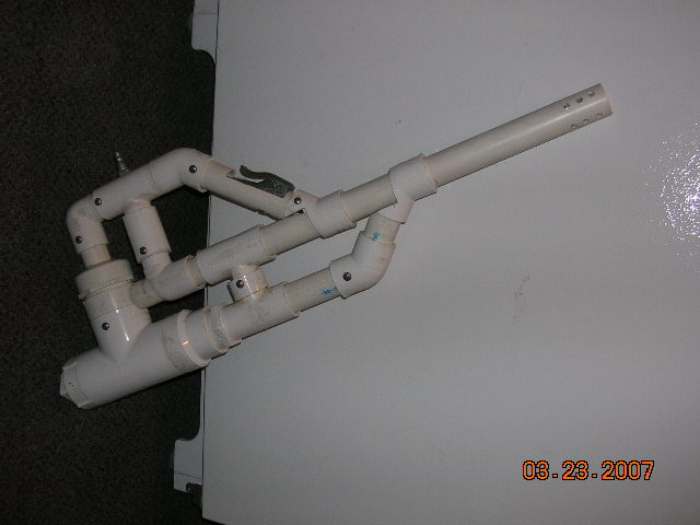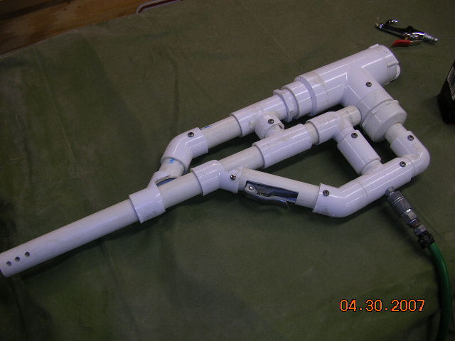 Hear it is, the ultimate, the dominate, the bbmg! this was a really fun project to to and redo some stuff on the internals to make it perform better than before. the performace went way on on this bad boy from shortening up the hoses. The vortext block was machined from a solid piece of pvc and made on the laith then epoxied into place with the hose coming directly from below to give it the most bang for the buck. i couldn't tape it in action so i took a damage photo of a poor pepsi can it demolished