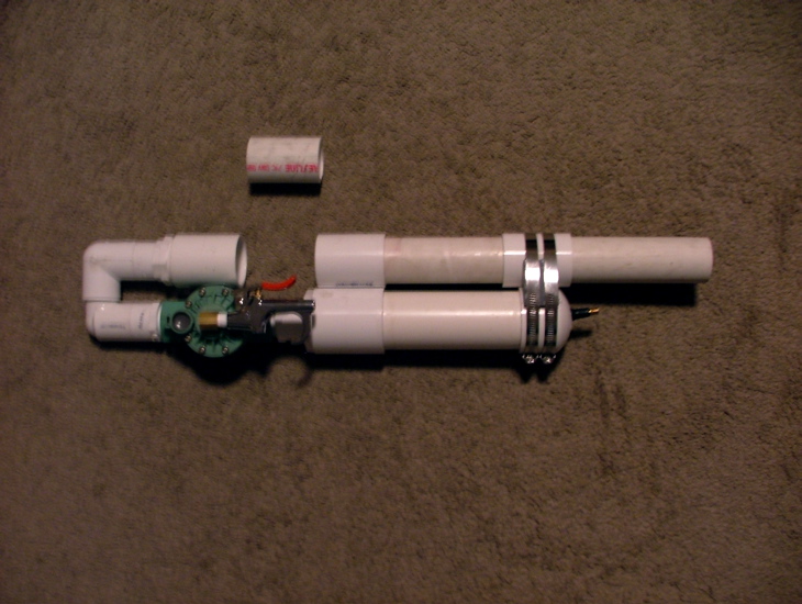 I was instead thinking of having a small bike pump mounted to the chamber, which would be cheaper than a CO2 setup (It is easy to pump the whimpy chamber up to 80psi with a good pump). If I ever do get a CO2 setup it will be used for my Vortex Gun.