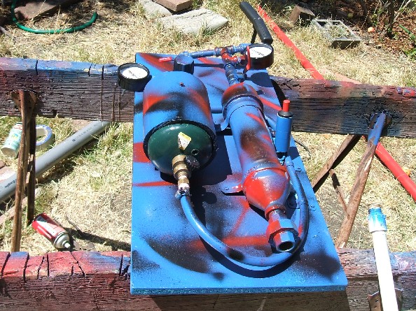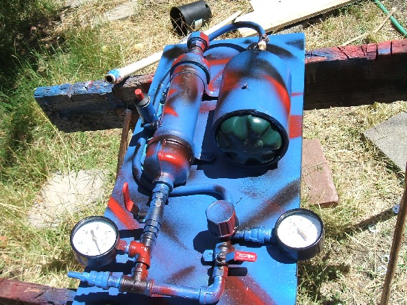 Mopherman, this is the first one. I just redesigned it. The very first design had a tank that I would fill with a hybrid mixture, then hook up the the ignition chamber with an air chuck. The second design had a larger propane meter that kept the fuel from mixing, so it wouldn't work.