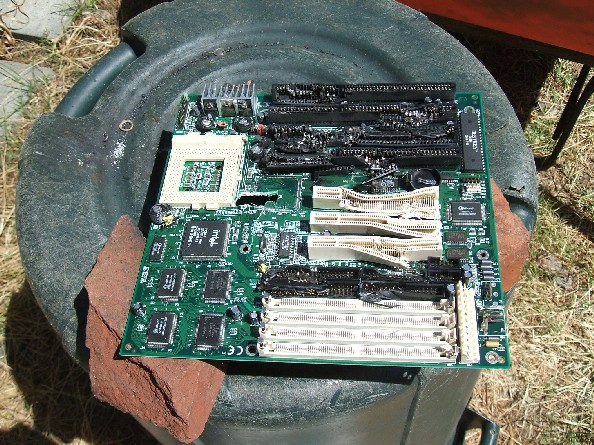 OK, got some improvements! I mounted the cannon to a piece of 3/4" plywood, and got a better paint job for it. The gun is clamped to the board with those steel pipe brackets. It is extremely sturdy, and doesn't budge when firing. I still need a longer barrel, but I plan on getting one tomorrow or Sunday. I also recorded pictures of random crap that I shot up.