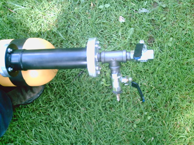 accelerator named "the stinger". chamber is a firefighters air tank rated to 2216 psi. barrelis 72 inch long piece of aluminum pipe with 1/2 inch thick walls.