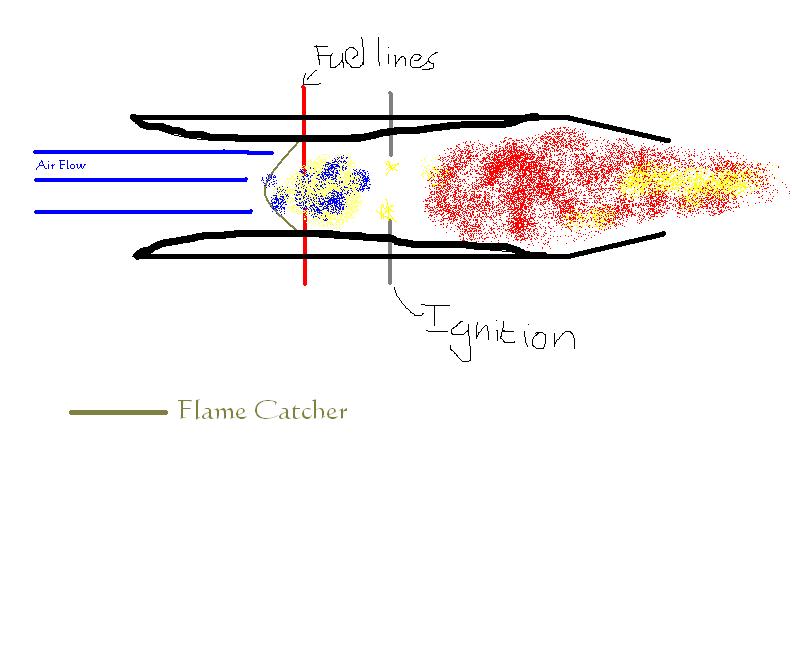 Don't get me wrong, you can make a ramjet work at subsonic speeds, but it's incredibly inefficient, kinda like starting a gasoline engine. A ramjet works best when the air flow into the engine is supersonic. At ignition the air flow needs to be reduced to at least subsonic. The lower velocities in the ignition chamber the more powerful and efficient the engine becomes. For the fuel, I would use kerosene. The stuff comes in bottles for outdoor torches. Kerosene is the same stuff used in jet engines. However, it doesn't light very well if its cold. Before making an engine I would play around with different ideas for ignition. I've got the idea for a chamber that significantly reduces air flow using a coffee can and a bit of steel tubing. It's not designed for prolonged use but rather a proof of concept model. The same design is used in homemade jet engines. It is almost a standard (if there was one) for homemade engines.trollhameran wrote:As i said In an earlier post, i didnt know a single thing about ram jets until yesterday, so your useful tips are much appreciated, I will be attaching an air source to the intake so that I can have air going through at high speeds and I will further research intake designs, but from what I have read so far I think it should work with a subsonic intake as i dont think a small car like this will go over the speed of sound, please correct me if i am wrong about the intake as you seem to know alot more about it than me. Also is methylated spirits an ok fuel to use? i'm not sure if it burns quick enough. I will be rebuilding the car soon, once i have more knowledge of the design elements, this was really just a quick thing i whacked together to test the things i have learned about ram jets so far, but the next model will hopefully be much stronger and more accurately put together