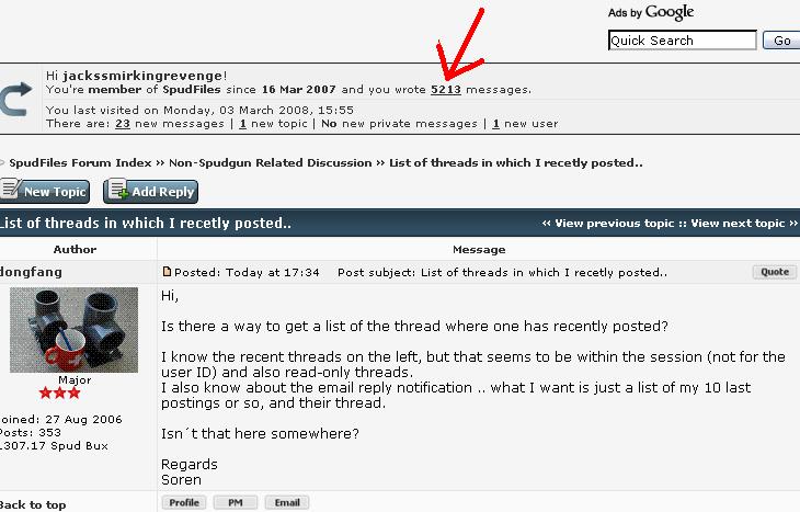 Thanks JSR for the tip with the posting count link; I´ll try that.