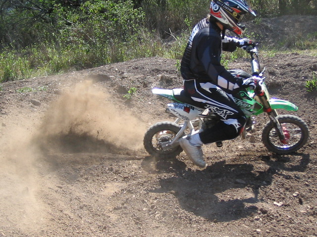 My track consists of 12 berms, 2 staicase stutters, 2 step ups, 1 12meter stutter section, 1 table top and 2 doubles. I built it all with our Case 1190 tractor and a shovel :)