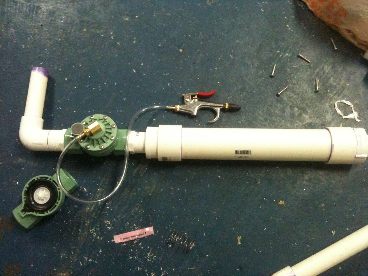 Hey guys. Building my first gun. Nothing special. I purchased an orbit 57101 1" valve. I built my chamber, into the valve (arrows are facing away from chamber), then barrel out of the valve. I drilled a hold right in the center, tapped it and threaded a barbed fitting in and ran a hose (short) to a blow gun. I epoxied the hole where the solenoid was. Now when I put air into the chamber, it goes through the valve and out the barrel. I searched for a solution, and the only thing I could find is that maybe the diaphragm was dirty and to clean with mild soap and water. I did this no help. I added a little lithium grease, no help. I just went and bought another valve just to be sure...and the new valve does the exact same thing. Obviously it's something I am/am not doing...but what could it be.....the mod is so simple!