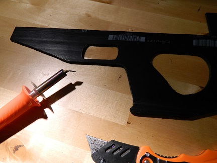I think the only innovative design aspect of the gun is the stock I made for it. It's a clamshell! It's made out of flattened and laminated ABS DWV pipe. I cut the shapes out using a soldering iron with knife attachment. I joined the layers using ABS cement. And I devoted long hours to sawing, carving, and sanding it for ergonomics. There is an upper and lower receiver which are easily joined/separated with a single bolt and wingnut. I really enjoyed working with ABS because you can weld it, melt it, glue it, cut it, drill it, bend it, impress it, and even mold it too. You have to be careful about what you breathe so I invested in a respirator with a charcoal filter. This was handy for using the soldering iron on the plastic!