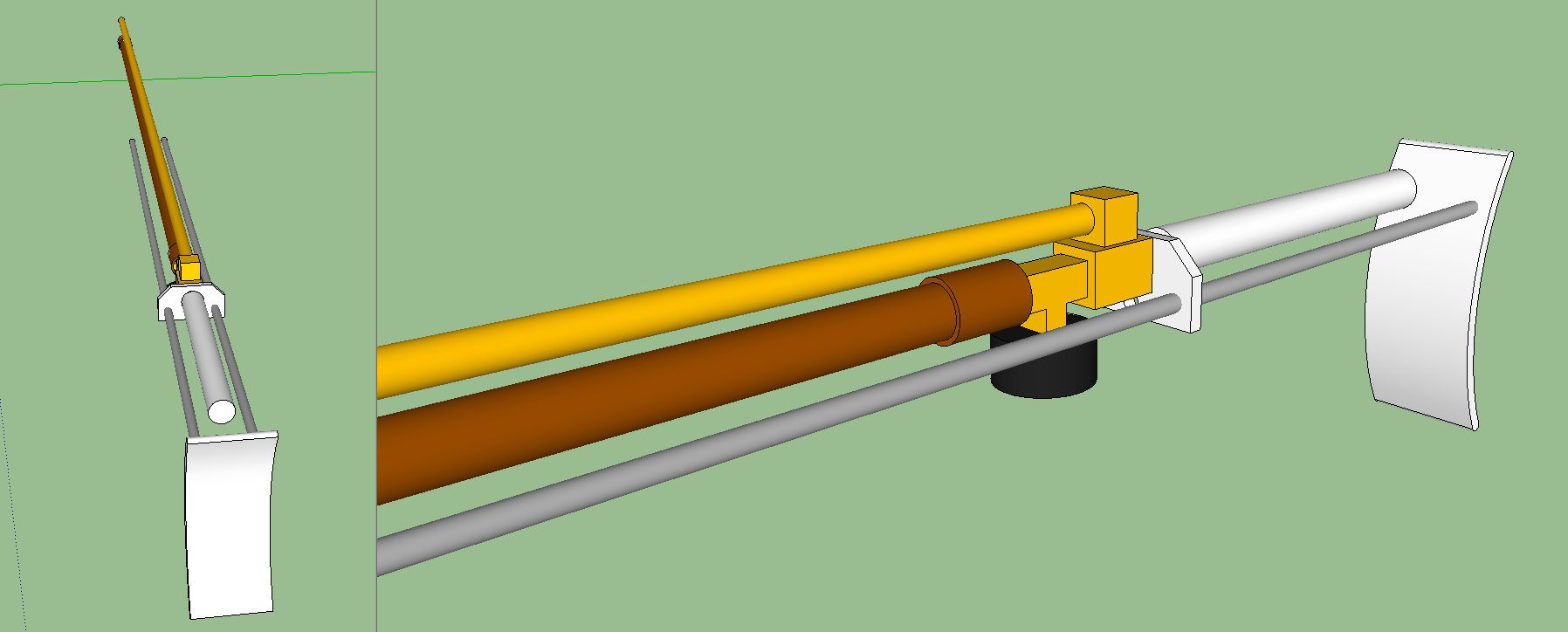 Here's how I plan to mount the hammer and stock and trigger stuff... it's two 1/4" threaded rods 2' long, mounted using the mounting thread on the valve and will also be secured to the chamber with more mounts that I didn't draw.