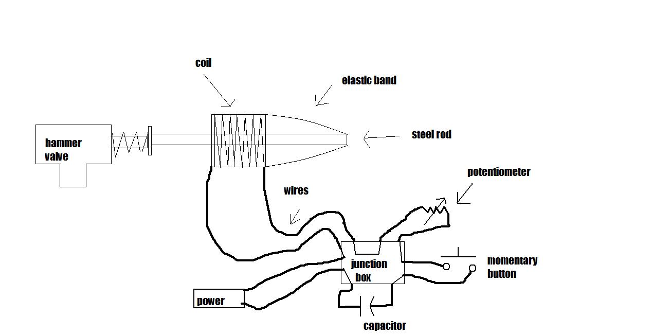 I thought about the idea of "shot" the hammer, and it would work, but charge capacitor is difficult, I can't get a transformer that doesn't burns out quick.