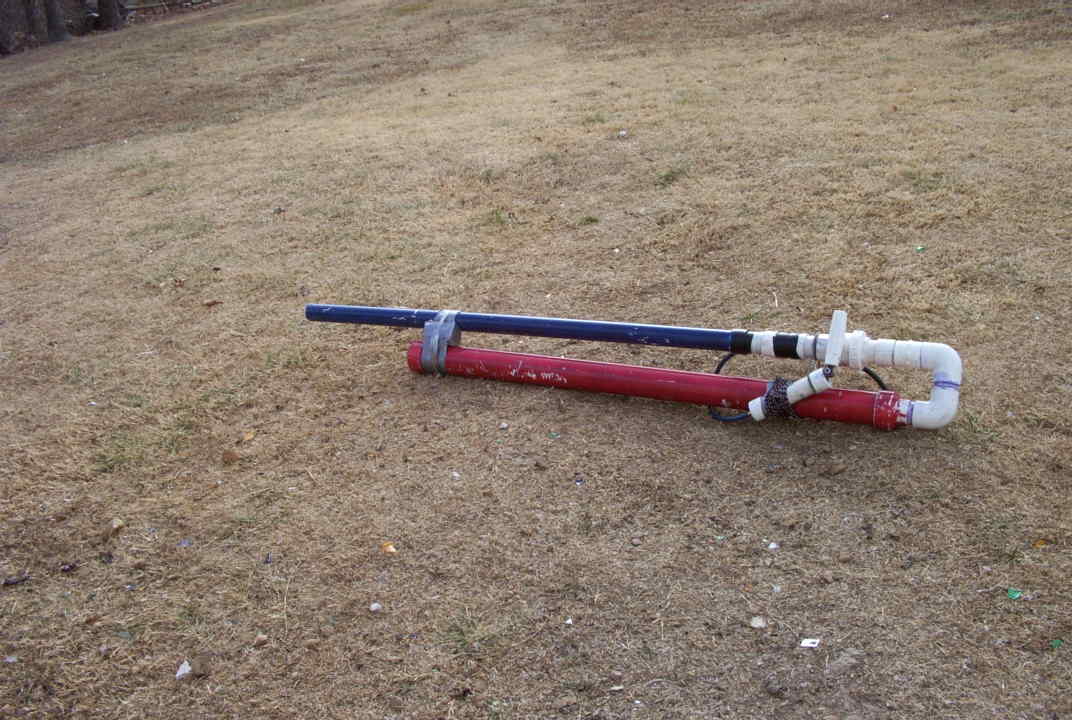 I saw the idea for a ram on this forum a few weeks ago and thought I would try it. It is just put together in this picture with duct tape and bungee cord to see if it would work and it worked better than I expected. It will shoot great er distances than any cannon I have built so far.