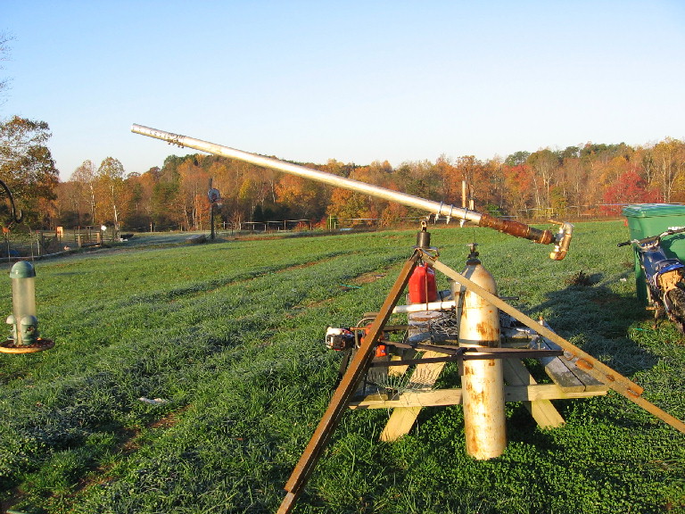 Full port BV venting the coax's pilot volume through the 3/4" Tee/3"nipple handle, the rear leg of the the tee has the homemade stock... ergos are just about perfect for me, and no NOTICED loss of performance from switching from qev/blowgun to bv, prolly because the pilot volume shrunk with this layout, and pulling the "trigger" is prolly less than 1lb of pull required... Next nice day I'll get some vid's of firing it...