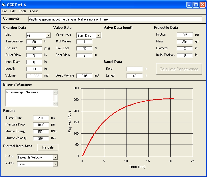 I used trial and error in GGDT to approximate the minimum PSI for my barrel to about 87 PSI. Here are GGDT screens at 87 PSI, 100 PSI, and 150 PSI.