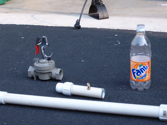 this is my own for of a zooka. goin from muzzle to chamber; 1" coupler, 1" 2" shc 40,1" male adapter, 1" lawn gene sprinkler valve/blowgun, 1" male adapter, 1" 4' sch 40, schrader valve. any kinda bottle will do.