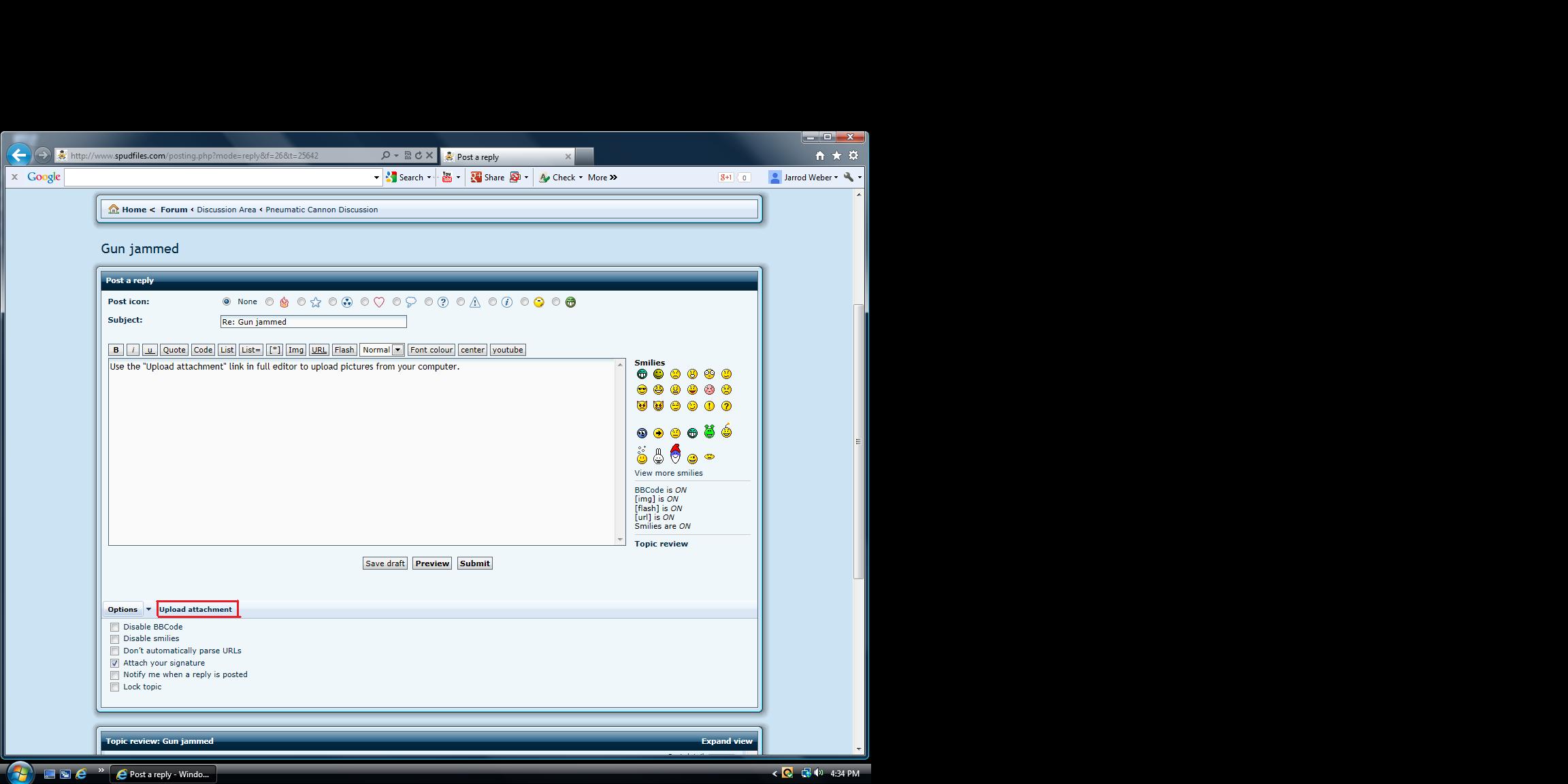 Use the "Upload attachment" link in full editor to upload pictures from your computer.