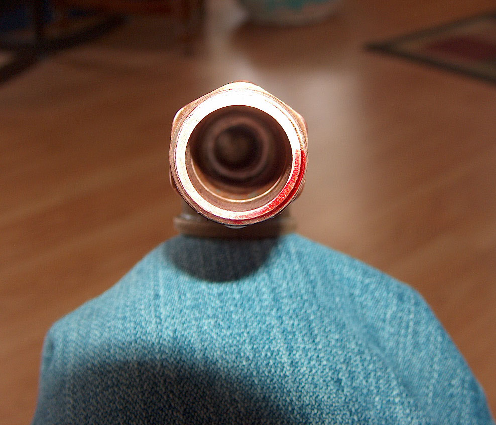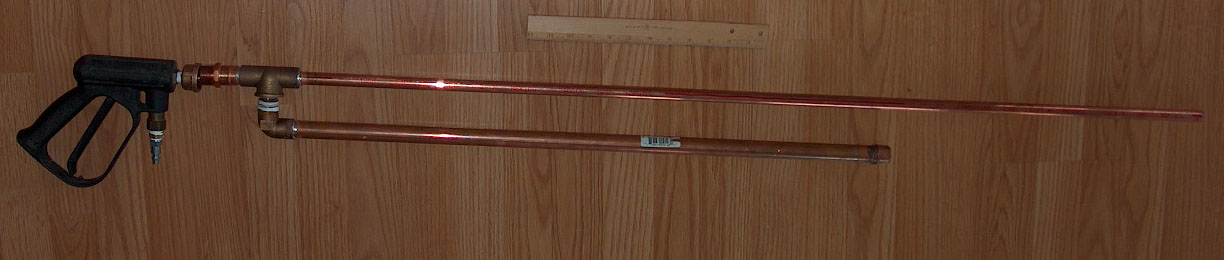 The chamber and tee fitting are both 3/4" Type M copper piping. The chamber is 2.5 ft long. The barrel is 4 ft. of 1/2" Type M copper tubing.