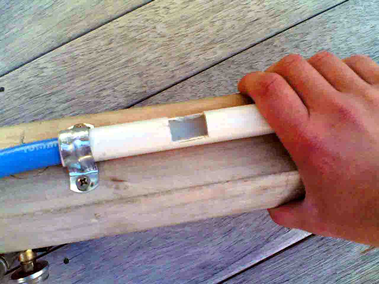 I made this one out of an old fire extinguisher, a 2 by 4 and some electrical pipe. This is as simple as it gets for using a fire extinguisher as a chamber.