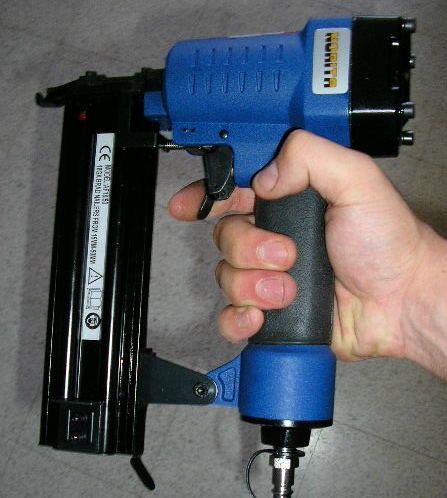 ok well my mom has this friend that is a contractor and i build crap with him allot and he lets me use his tools if im not at my dads or my dads shop.. so needs a nailer that can fasten a 2x4 to concrete.. he has one that uses those blank .22 cal to drive the nail but those blanks for it get to costing alot when u are a contractor.. so he told me had give me $300 usd if i made him a pneumatic nailer to nail 2x4's to concrete..now he knows a guy from bostich and if this is good enough he was talking about getting a patent for it but ill not go into that.. so what i need ur help on..