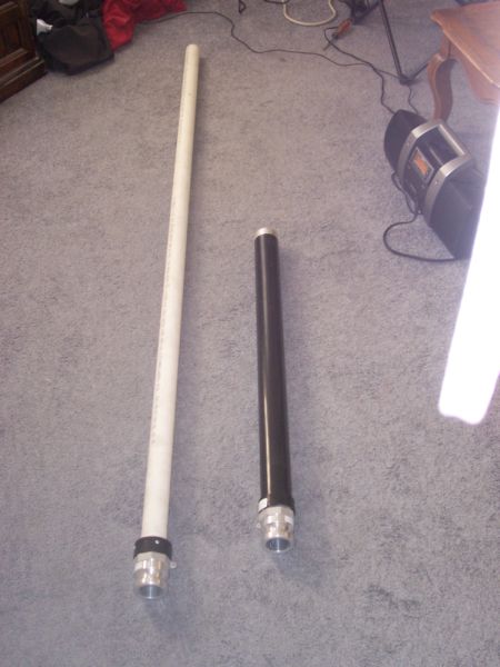 Here is my newest incarnation of spudding mayhem. Used my same formula of 4" x 24" ABS down to a 2" fitting. I got an aluminum camlock deal for the interchangable barrels, and the aluminum were cheaper than the poly cam locks.