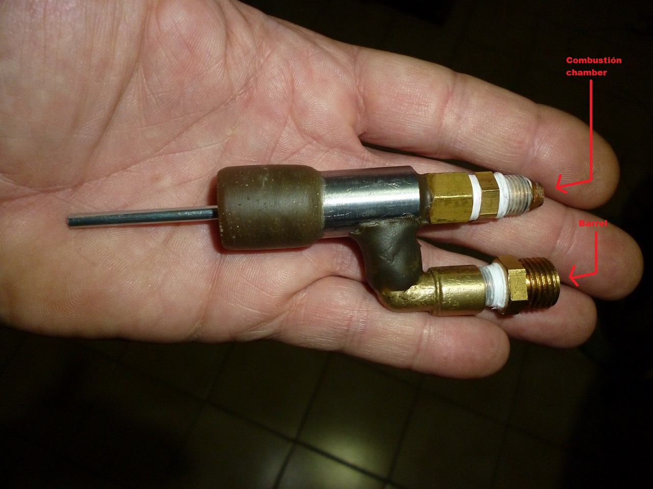 The air pump is 16 mm in diameter and the combustion chamber has about 15 ml of internal volume.