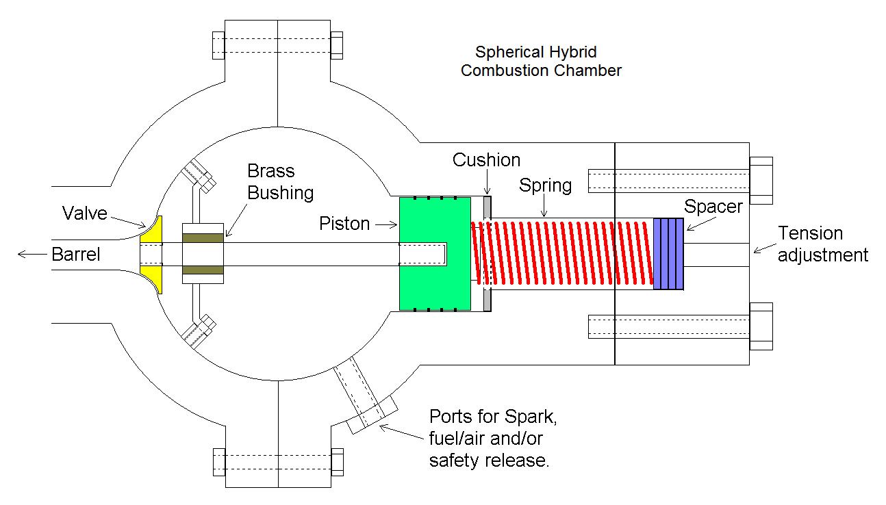 As Larda's hybrid is unlikely to see an equal or better in pressure for a very long time (excepting of course anything Larda may have planned), and that I believe the runner up on pre-ignition pressure is barely more than a tenth of what the HyGaC20 uses, I doubt we need to be looking at spherical chambers yet, except when using other fuel combinations which have not yet seen popularity, such as my proposed propane/Butane hydrocarbon blend (to boost pre-ignition limits to 320x - but based on the results of 200x, it isn't likely to detonate anyway) or the He/H<sub>2</sub>/O<sub>2</sub> idea (which I proposed as a ultra-high velocity option) - or just anything oxygen enriched in general, which has a faster flame propagation rate, so is more likely to undergo DDT.