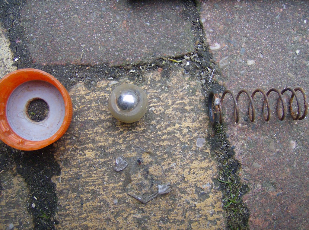 The piston sitting on the O-ring is building up pressure when the air valve (ball bearing).